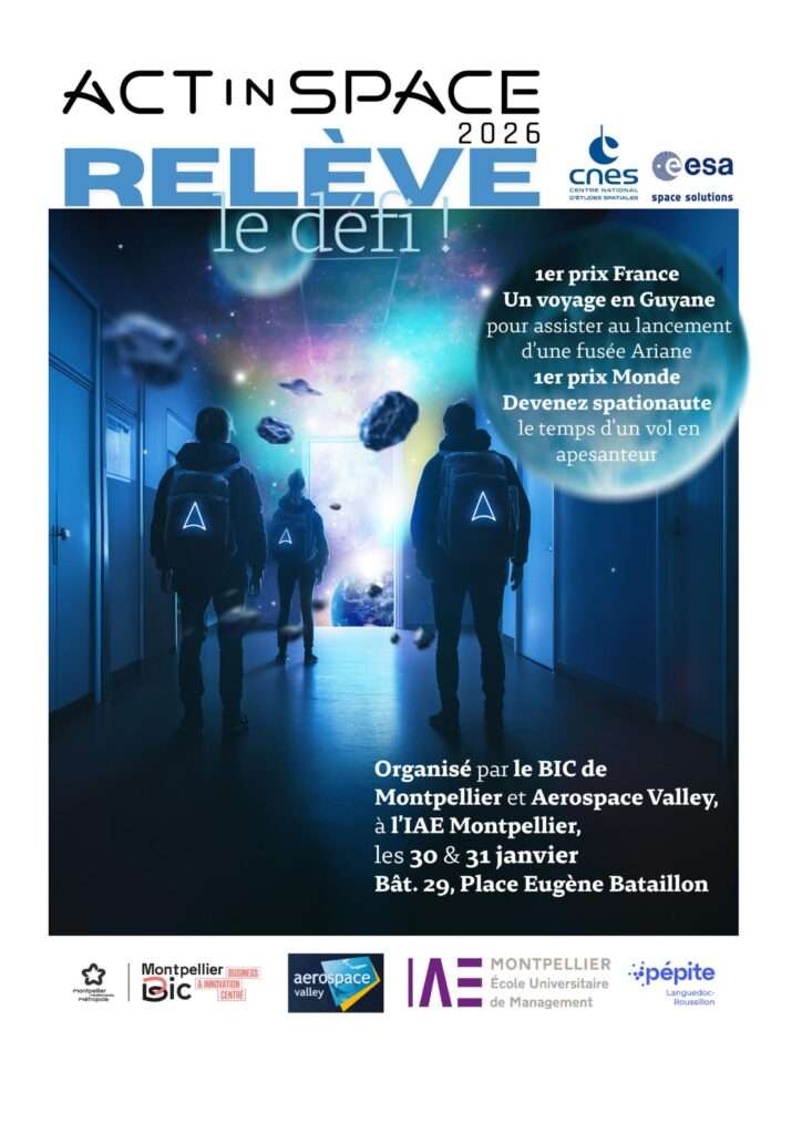 Organisé par le BIC de Montpellier et Aerospace Valley à l’IAE Montpellier – Université de Montpellier (campus Triolet), ActInSpace est un événement international conçu par le CNES et l’Agence Spatiale Européenne (ESA).