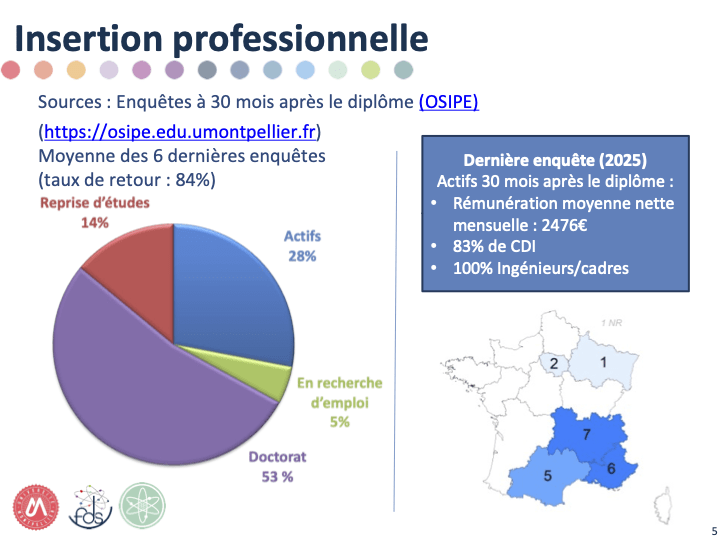 Le Master Physique Fondamentale et Applications affiche un taux d’insertion professionnelle de 95 % dans les 30 mois suivant l’obtention du diplôme.